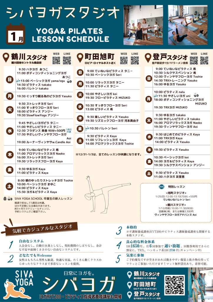 12/31(水)~1/3(土)は、全てのレッスンがお休みになります🎄